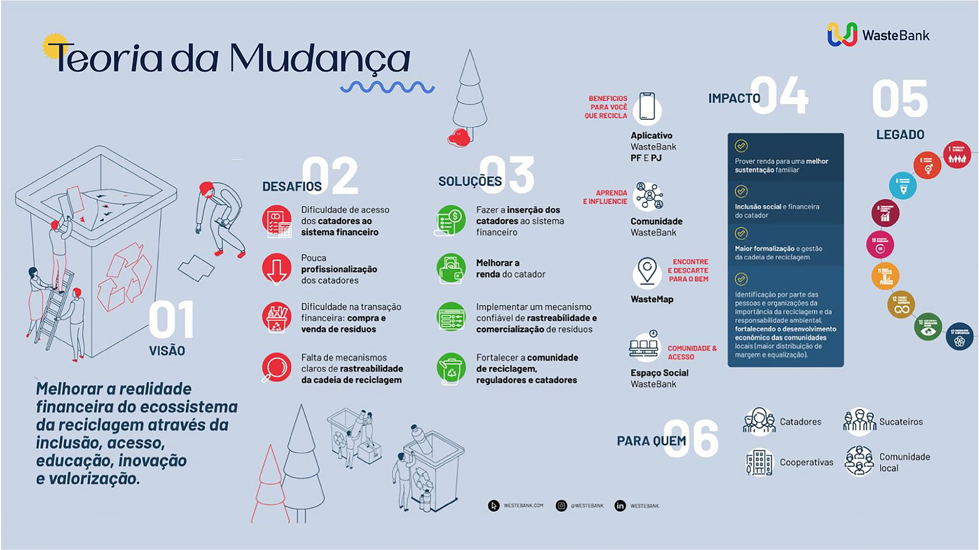 No Waste Bank, unimos tecnologia e inclusão financeira para impulsionar inovação, acelerar o desenvolvimento e gerar impacto positivo — para as pessoas, para o planeta e para os negócios.